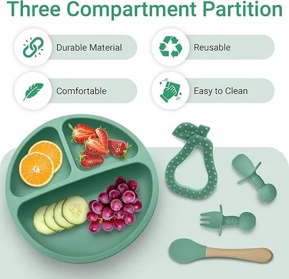 - Smart Design for Easy Mealtime: Mealtime becomes a joyous and mess-free experience with our smartly designed feeding set. The plate's clever compartments cater to various food types, ensuring a well-organized serving. The strong suction in both the plate and bowl prevents spills and mess, making it a challenge for little ones to pull or tip over.